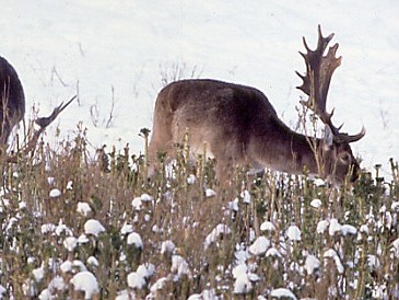 Abbildung: Begehrte Äsung übers ganze Jahr, die jederzeit einen guten Anblick bietet. Im Spätwinter sorgen Furchenkohl und Grünkohl für einen gedeckten Tisch.