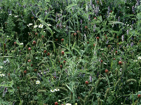 Achillea millefolium = Schafgarbe, Avena sativa = Gelb- + Schwarzhafer, Brassica oleracea var. viridis = Westfälischer Furchenkohl, Calendula officinalis = Ringelblume, Capsella bursa-pastoris = Hirtentäschel, Carum carvi L. = Wiesenkümmel, Cichorium intybus = Wegwarte, Daucus carota = Futtermöhre + Wilde Möhre, Foeniculum vulgare = Fenchel, Glycine max = Sojabohne, Linum usitatissimum = Körner-Leinsaat, Lotus corniculatus = Hornschotenklee, Matricaria recutita = Echte Kamille, Medicago lupulina = Gelbklee, Medicago sativa = Luzerne, Onobrychis viciifolia = Esparsette, Petroselinum sativum = Petersilie, Plantago lanceolata = Spitzwegerich, Sanguisorba minor = Kleiner Wiesenknopf, Silene dioica = Rote Lichtnelke, Taraxacum officinale = Löwenzahn, Trifolium incarnatum = Inkarnatklee, Trifolium pratense = Rotklee, Trifolium repens = Weißklee